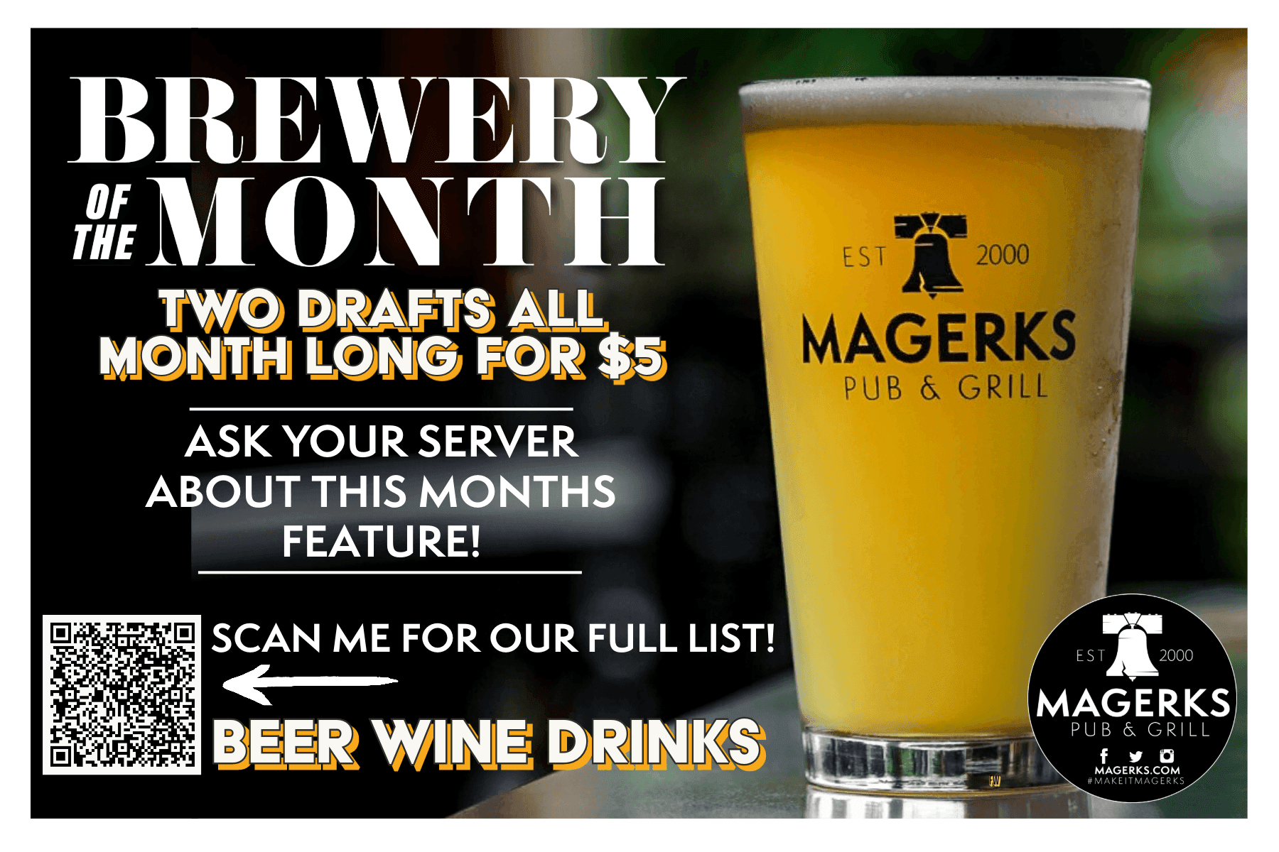 Dine and Donate Info: Host A Dine & Donate At Magerks And We'll Donate 15% Of The Sales From Your Supporters Back To Your Organization. If Interested in Dine & Donate, Please email us at elon@magerks.com