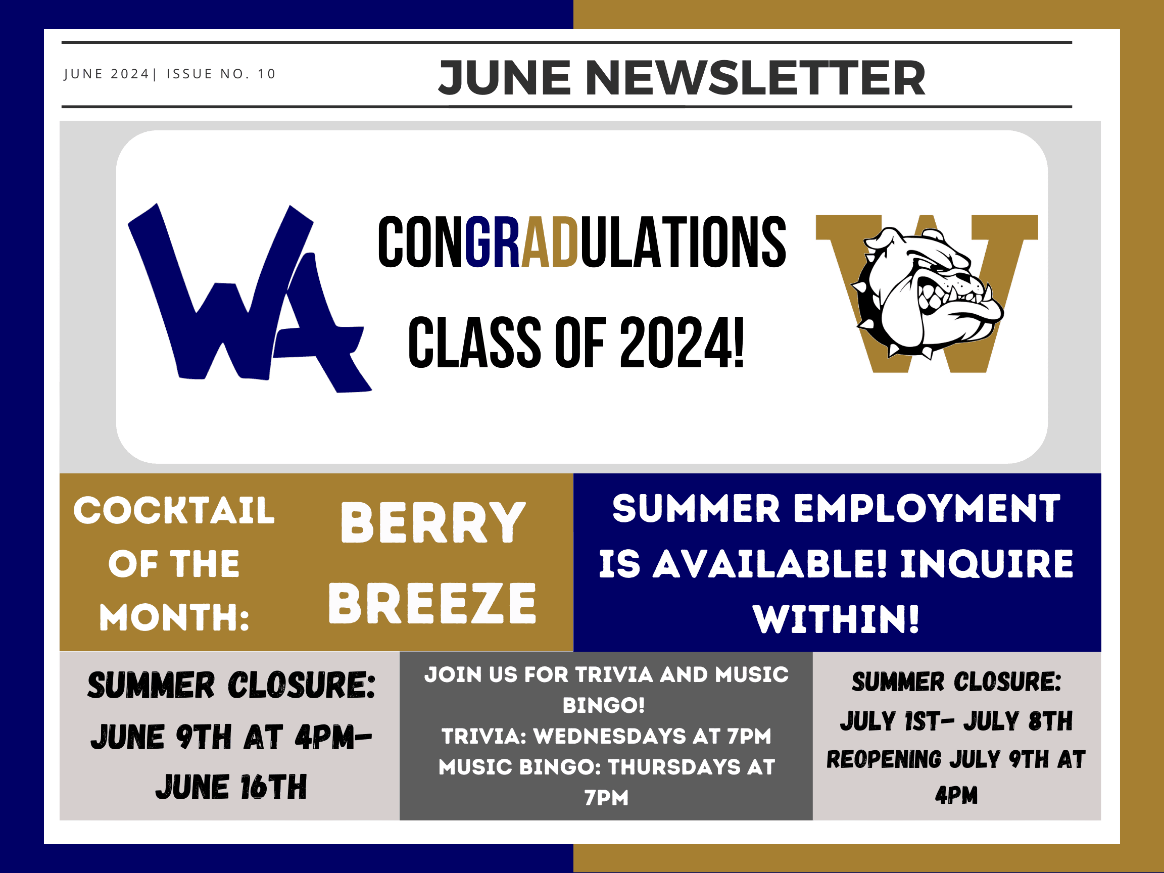 Take a Look at our Monthly Newsletter to see what's going on every month!